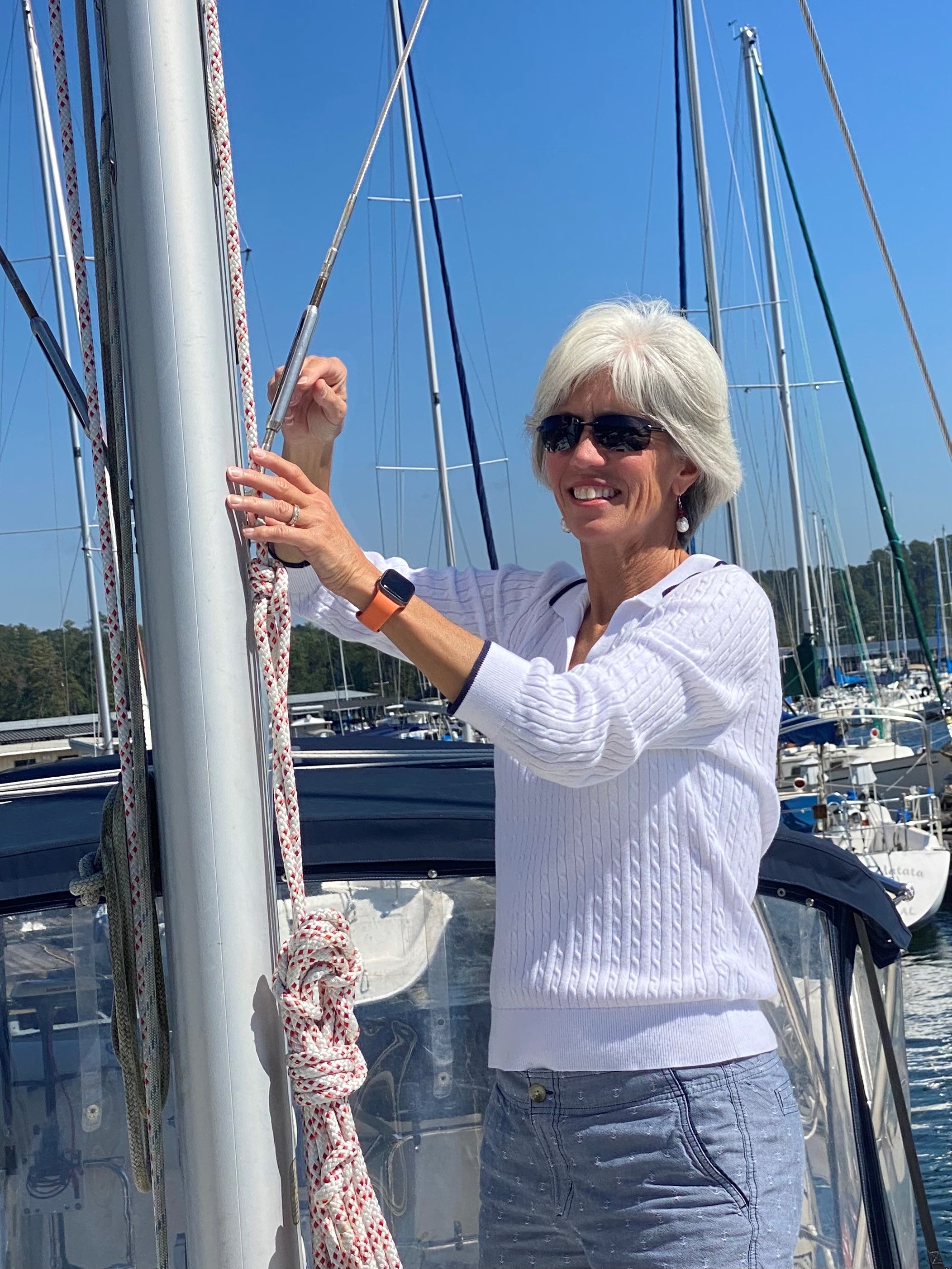Kendall Borchardt learned to sail on Lake Lanier, Georgia, on her first sailboat, a Catalina 27. She joined a sailing club and got immersed in the sailing community, serving as Treasurer of the club for several years. Later, she bought a Cal 31 with her partner and raised their son on that boat, followed by a Hunter 36. In 2023, they moved to St. Petersburg, Florida, and bought a cruiser, a Beneteau 45 Oceanis Elysium. Elysium means “a state or place of ultimate happiness”. Kendall proclaims, “A bad day sailing is 100 times better than a good day at work”.
